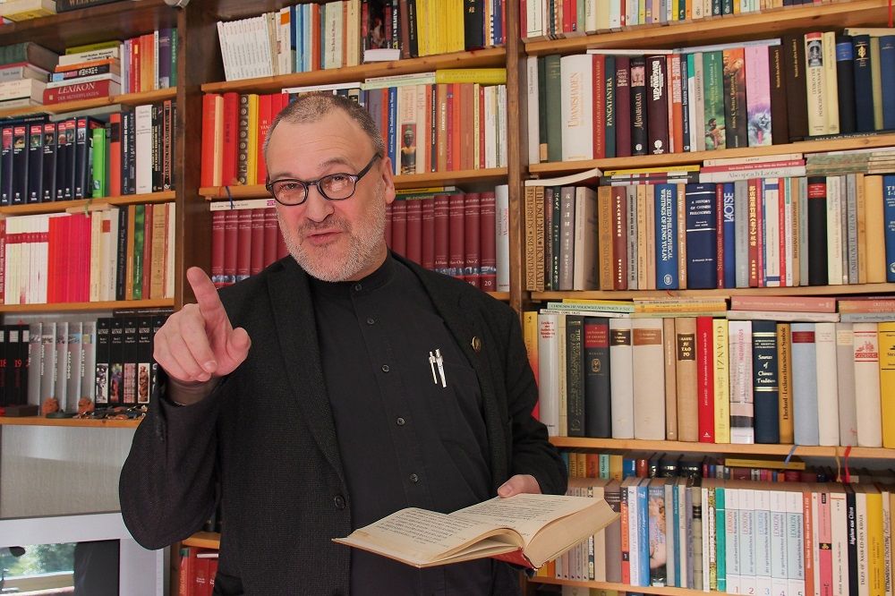 南因果家中基本上没有空白墙面,满壁都是他父亲用非常结实的木头自制的书架,上面放着他收藏和时常查阅的书。据他说,70%是关于中国的学术书籍,因为他是汉学家和民族学家。他家中还有大量马列书籍和党史书籍,这也是他主要的兴趣点和研究领域。有次德国一个大学城举办一场党史研讨会,南因果的演讲非常精彩。他用幻灯片讲了很多早期少数民族高层干部的故事,以此说明,早期就很重视发挥少数民族人才的作用,西方国家说中国政府压制少数民族是不对的。有图,有生动事例,有真相,一下子就调动起了现场气氛。记者还亲历过2008年他在莱比锡举行的一次演讲,也很出彩,因为他曾在西藏牧民家住过一个月,做民族学田野调查。他讲的一些纠正德媒对西藏偏颇报道的西藏文化发展生动实例,让普通德国听众听得直鼓掌。