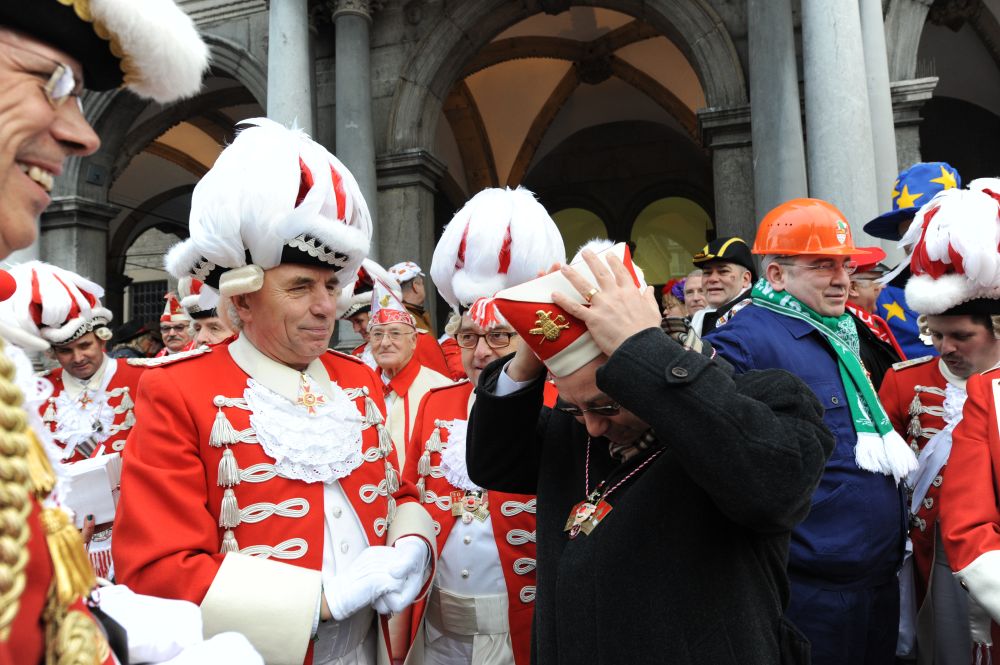 2012年2月20日,科隆市长罗特斯(左二)在科隆狂欢节上。(班玮 摄)
